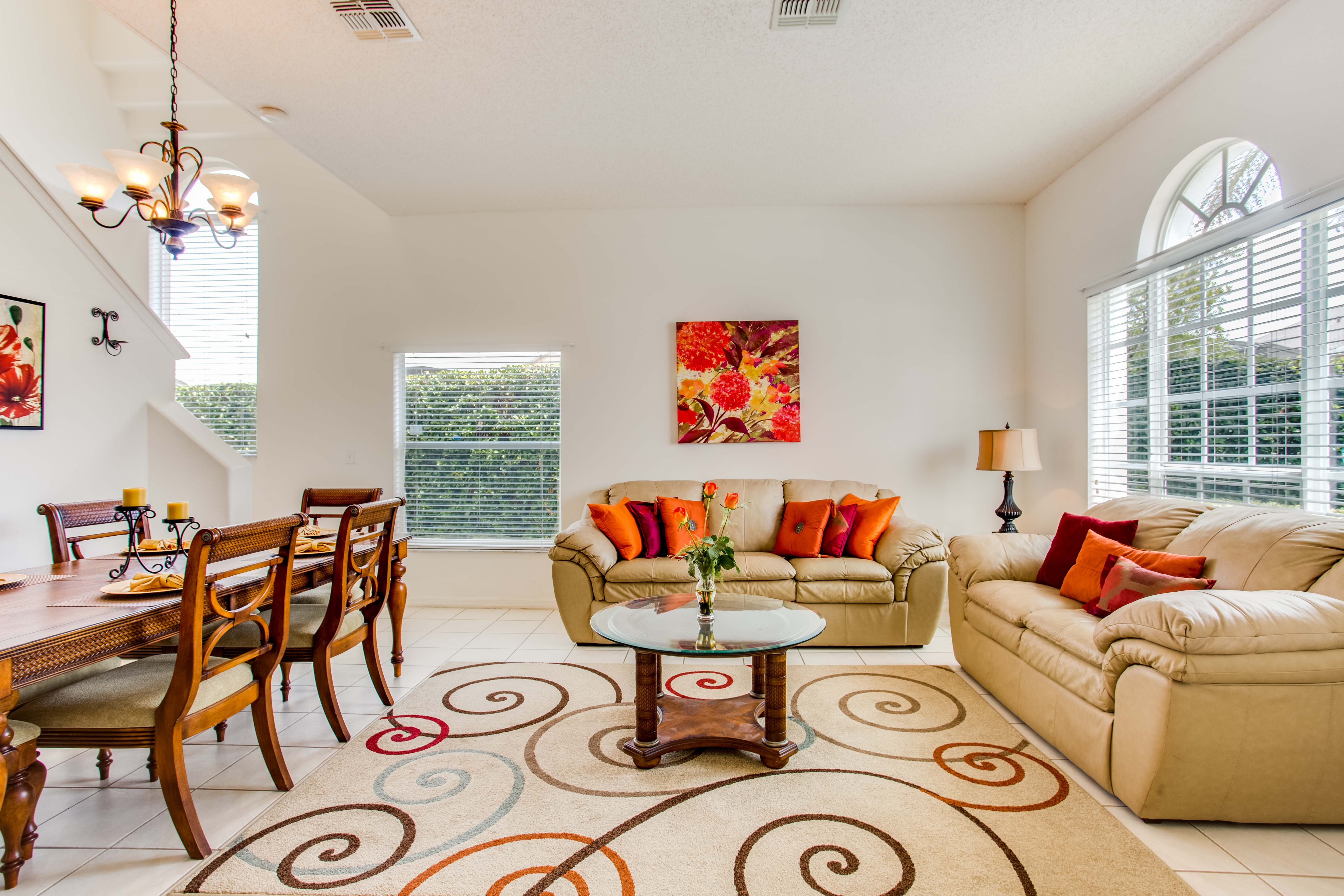 seater wood dining table and the 2 leather sofas really