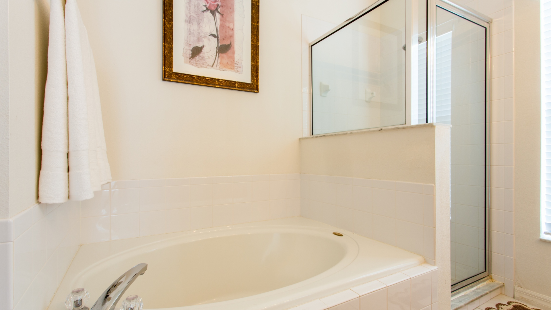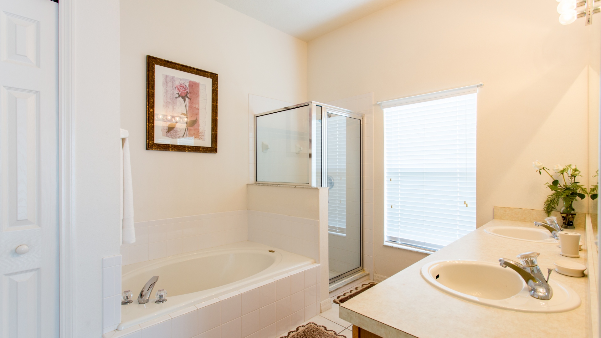 The Master Bathroom Suite has a Walk in Shower, Oval Bath, Twin Sinks with a large walled mirror and a Separate WC room.